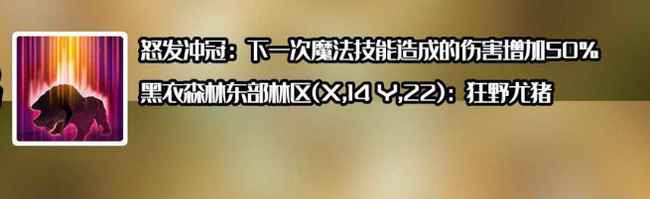 12、怒发冲冠 必须学会的魔法回天,黑衣森林东部林区(18, 24)的狂野疣猪会使用这个技能,请注意关注buff栏再酌情进行击杀。
