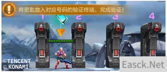 来到验证区域击败敌兵后,才能开始验证,持有密匙的玩家,在符合密匙编号的验证终端旁完成读条,便能完成验证。验证机的顺序依旧是从左至右,1号机、2号机、3号机、4号机。如果玩家忘记了密匙的编号也没有关系,大家可以逐个终端尝试,只不过会耽误一些时间而已。