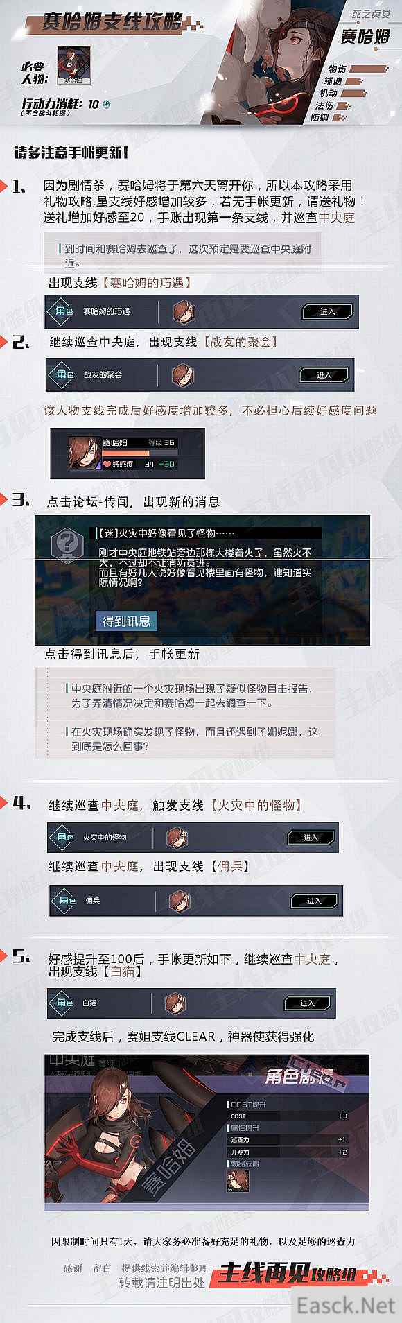 永远的7日之都赛哈姆支线攻略由小编为大家带来,相信很多小伙伴都已经获得了赛哈姆角色,那么赛哈姆角色的支线任务怎么过呢?下面就和小编一起来看看永远的7日之都赛哈姆支线攻略吧! >>>全神器使支线攻略汇总一览 永远的7日之都赛哈姆支线攻略: 来自:主线再见攻略组