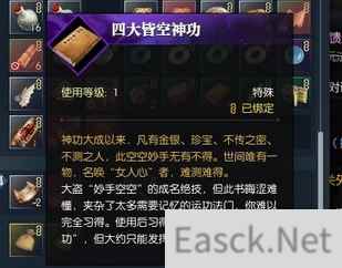 地点 汴京 甜水巷 人物 李捕快 简介 甜水巷来了一位李捕快,因为当今皇上身边的红人,大道士林灵素辛苦炼制的丹药被盗了。究竟是何人有此能耐,与甜水巷又有何关联? 奇遇奖励 任务做完之后可以获得特殊书籍【四大皆空神功】