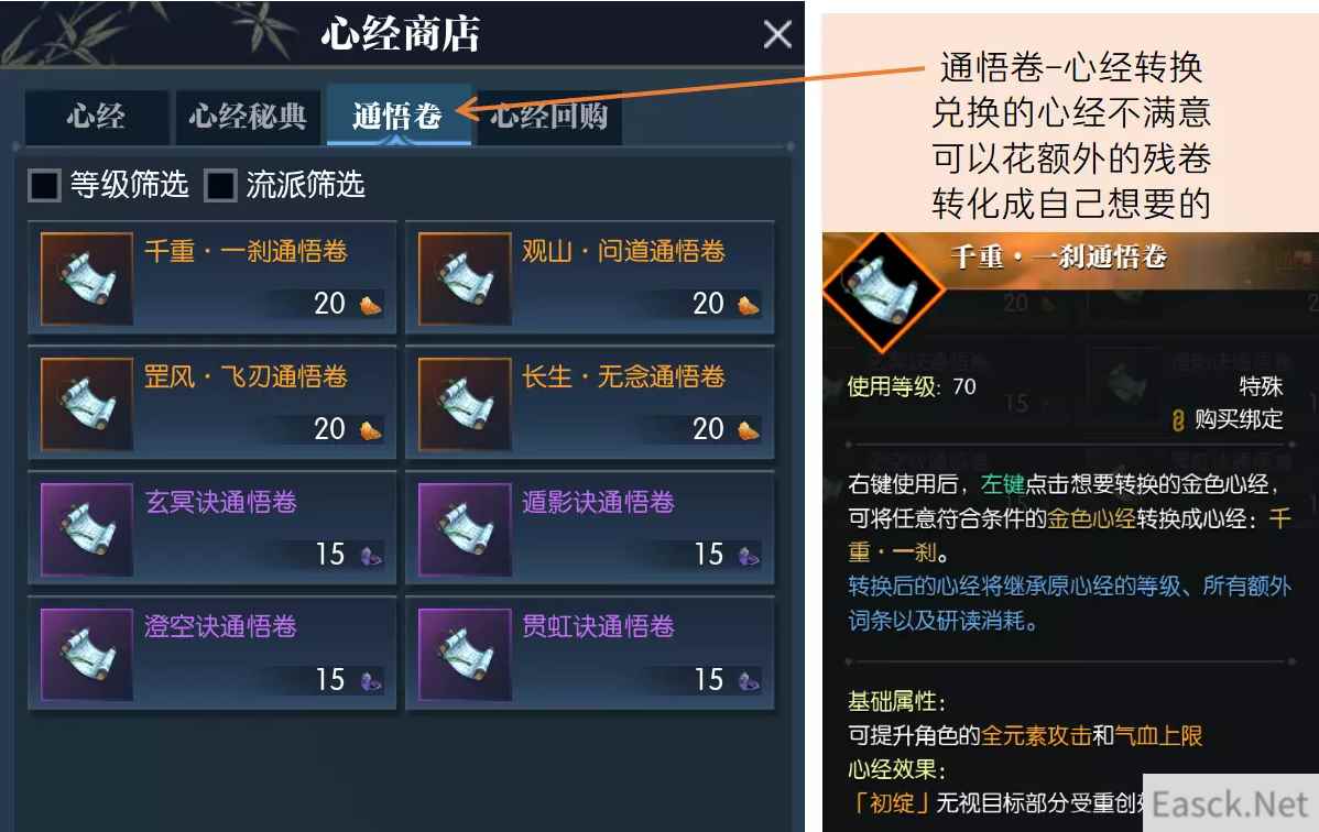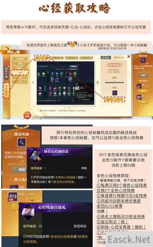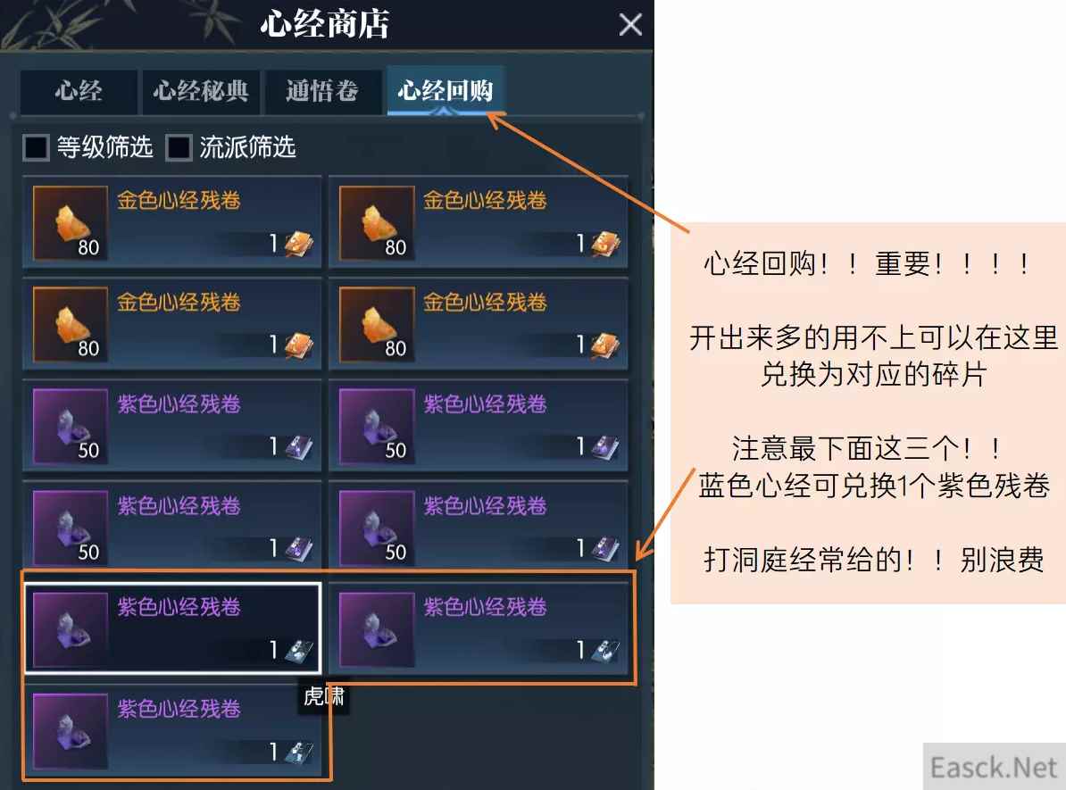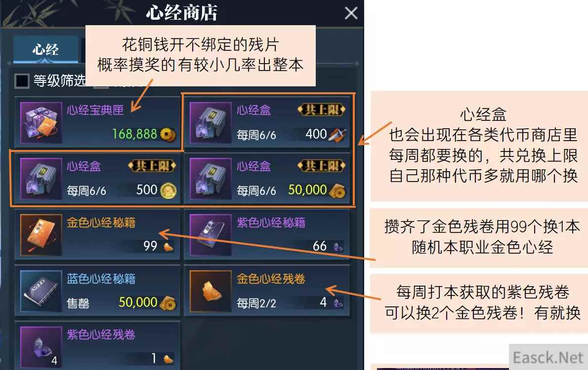 逆水寒心经系统是什么,很多小伙伴们都不知道心经系统是什么,有什么用,接下来就带着小伙伴们一起来看看逆水寒心经系统详解,希望能够帮助到小伙伴们。 逆水寒心经系统详解70级新开放了心经系统:获取心经提升角色属性、研读心经可强化流派技能! 心经获取、各流派不同品质心经效果、研读心经有哪些极词条? 具体看图! 以下是重点: 完成扬名之路4个引导任务可以自选1本紫色心经或者15个金色心经残卷 每周记得兑换心经商店内限购物品! 洞庭问剑副本给的蓝色心经!可以兑换为紫色心经残卷 整本金色心经-99个金色残卷兑换获得 人物等级80级,可提升10级心经至11级(需要30张金色心经残卷) 金色心经残券获取方式整理(慢慢攒能白嫖,等不及就消费) ①每周可用8个紫色心经残卷兑换2个金色心经残卷 ②青崖修行每期可兑4金残卷 ③洞庭问剑副本绝世难度老四BOSS掉落(背包随机开/队伍拍卖) 白嫖↑ 消费↓ ④扬名之路购买20张金色心经残卷 ⑤庙会购买 ⑥168888铜钱开心经宝典匣-有概率拿金残卷或者金整本 ⑦不定期消费活动 *例:2022七夕商店-突飞猛进匣.三:750迷天残页-40个金色心经残卷