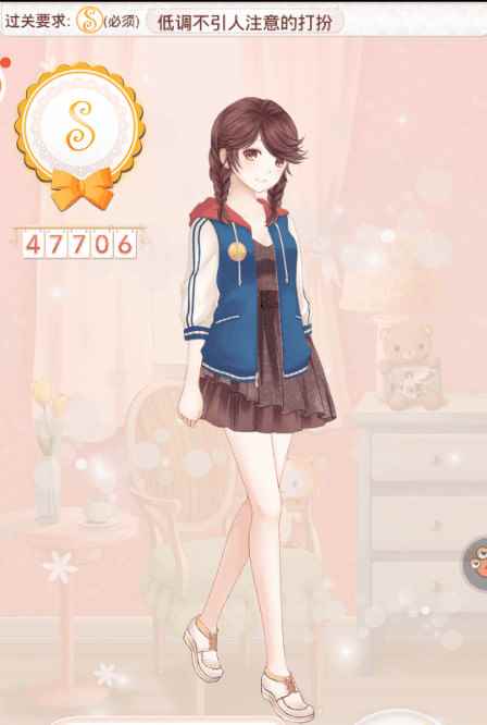 首先是S攻略 发型:寸心棕/团子头黑(下图发型为系统所给) 连衣裙:琼脂羊羹(上衣:暖暖短衫,下装:工装裤,需要添加饰品) 外套:蓝天白云 袜:普通黑丝袜 鞋:白色小皮鞋 头饰:特制棒球帽