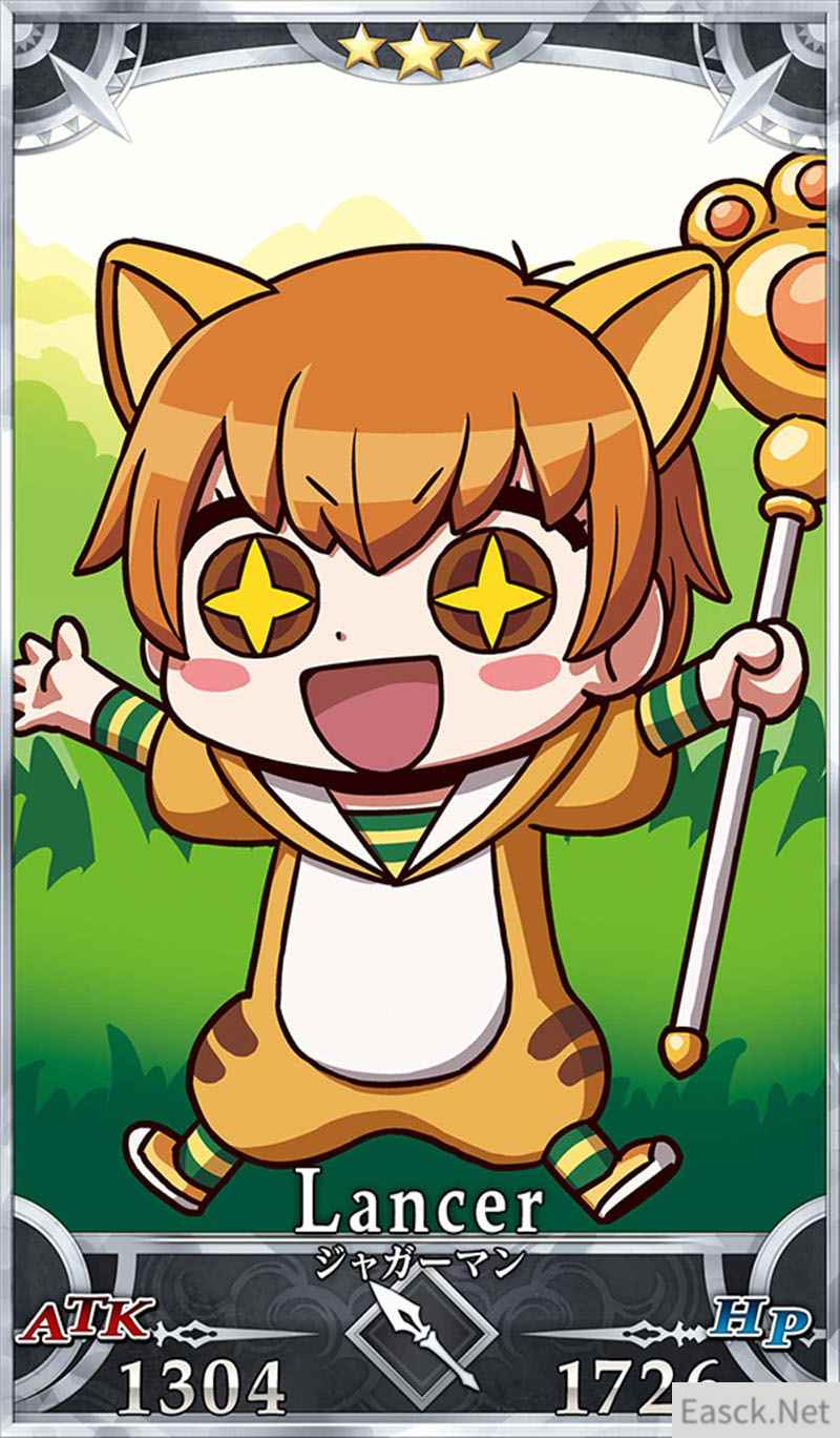 现在是我们目前即使在日服也是最后的一个3星的从者了,那就是豹人大河。属于神灵的美洲豹自身并没有性别之分,之所以为女性,只是寄存的身体正好是女性罢了。