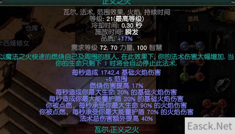 2、正义之火,正义之火法术伤害提升40%MORE相当于法术技能多一颗技能石
