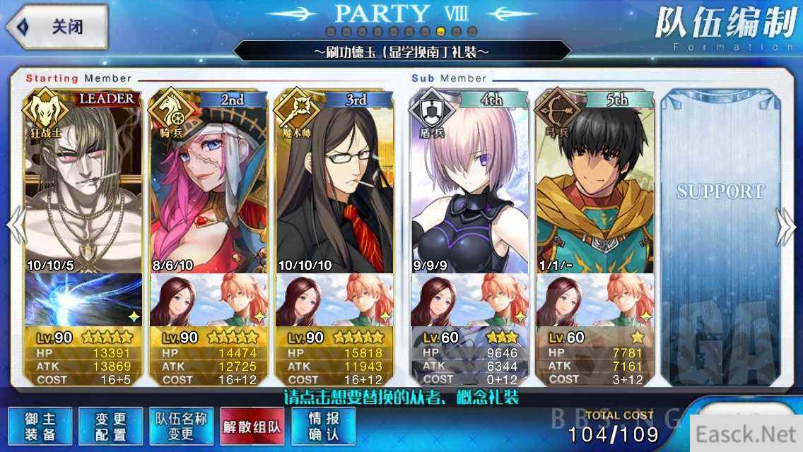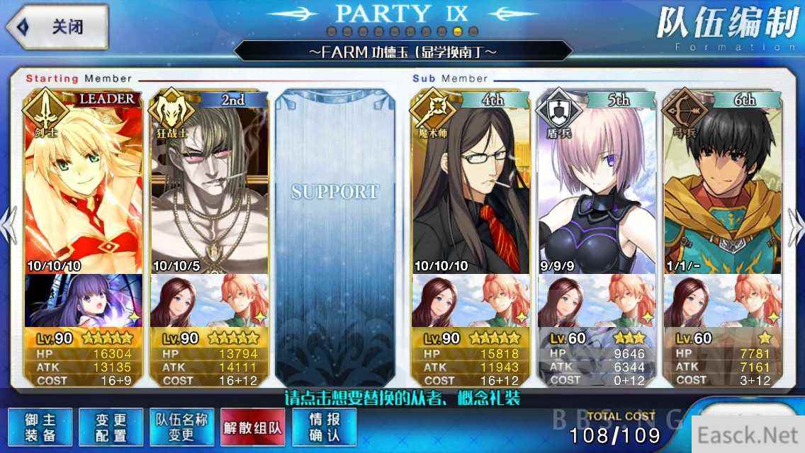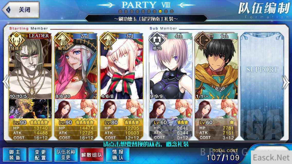 因为南丁礼装需要掉落一件才能满破,欧洲人满破后可以携带NP礼装轻松脚打,非洲人可以参考下面的阵容建议。 阵容一