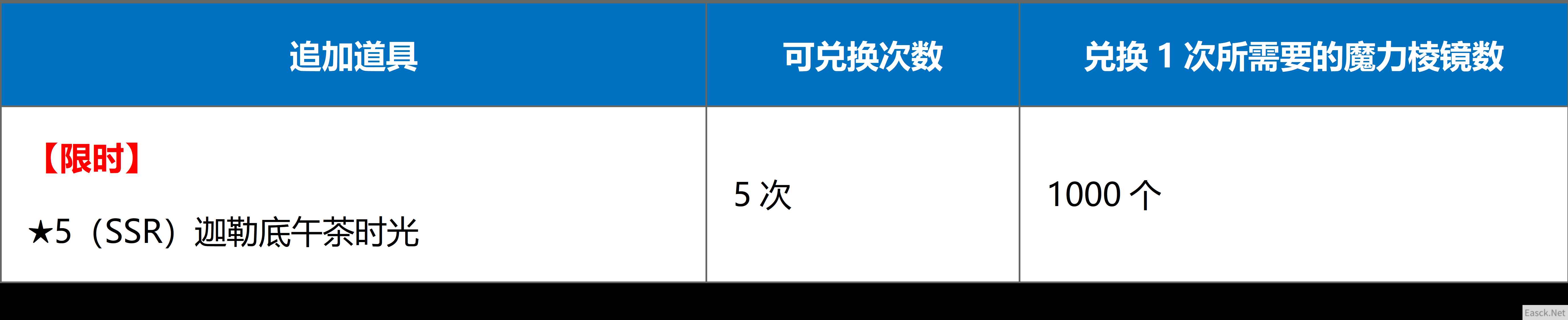 达·芬奇工房的「魔力棱镜交换」中将限时追加以下概念礼装和道具。 ◆魔力棱镜交换&限时概念礼装◆