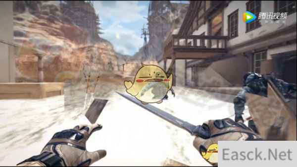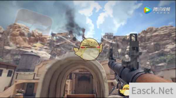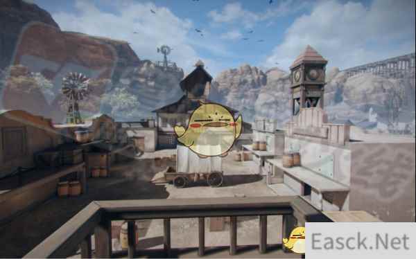 这张截图应该是站在其中一边的二楼阳台截的,正对着对面建筑的二楼阳台。从这个视角看过去,整张地图显得并不是很大,也算是合情合理,一张冷兵器地图设计的太大了,玩家的游戏体验不会很好的。向远处看去,似乎是有两架...风车?这是风力发电的机器吗? 另外,不知道大家有没有联想到之前CFHD一个CG里的画面呢?