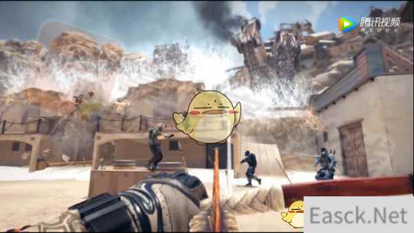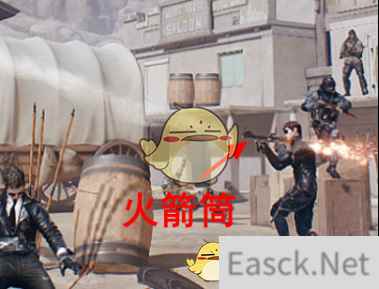 最后是画面中间位置,有一个人在使用火箭筒,这个可能是刷新在地图中心的一把特殊武器,一定会是双方玩家争夺的焦点。 别人都用冷兵器,你掏出一把RPG,这谁受得了啊?
