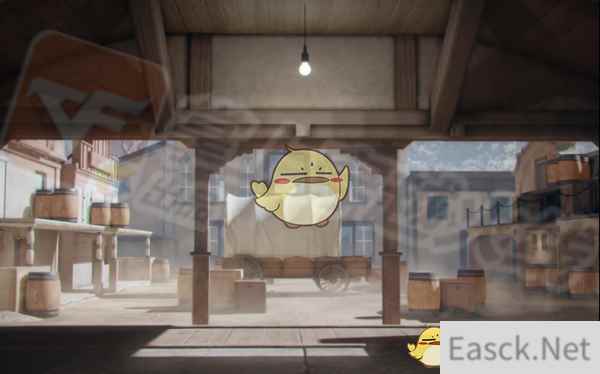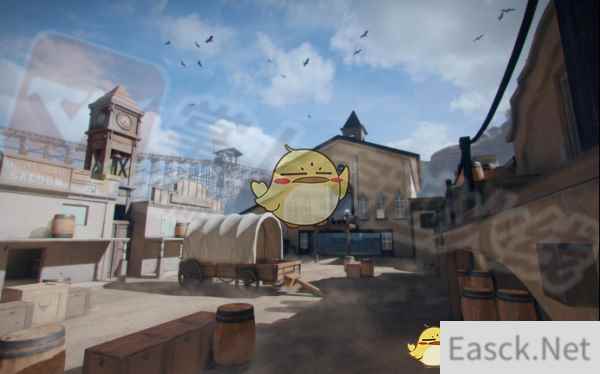 接下来我们来仔细看一下这张新地图。总体看上去像是西方中世纪的风格,有教堂式的建筑,还有马车、木桶等等,相当的有感觉。