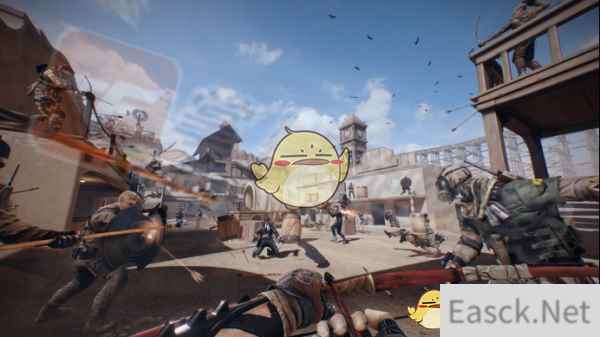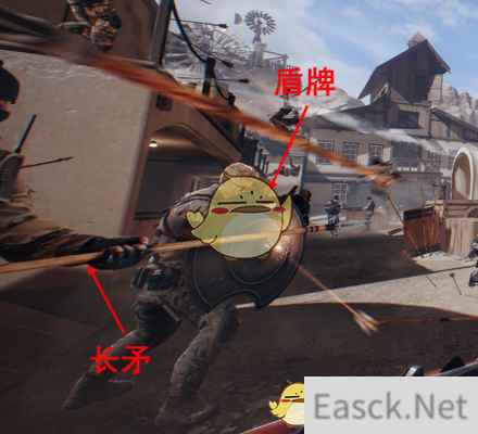 画面中少部分人使用的是长矛或盾牌,我们可以猜测一下,地图的特定位置是会刷新出几面盾牌的,所有人均可拾取,持盾玩家死后其他玩家可以继续捡起盾牌使用。另外,每个人只能携带一定数量的箭矢,用完之后就只能使用长矛了。 毕竟不要忘了,这可是歼灭战,一小局游戏中,每个人的资源都是有限的。