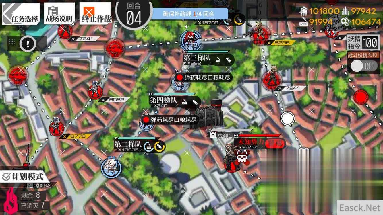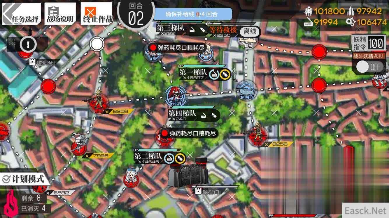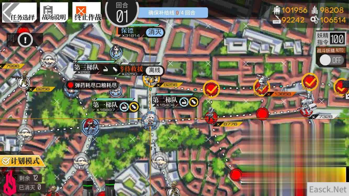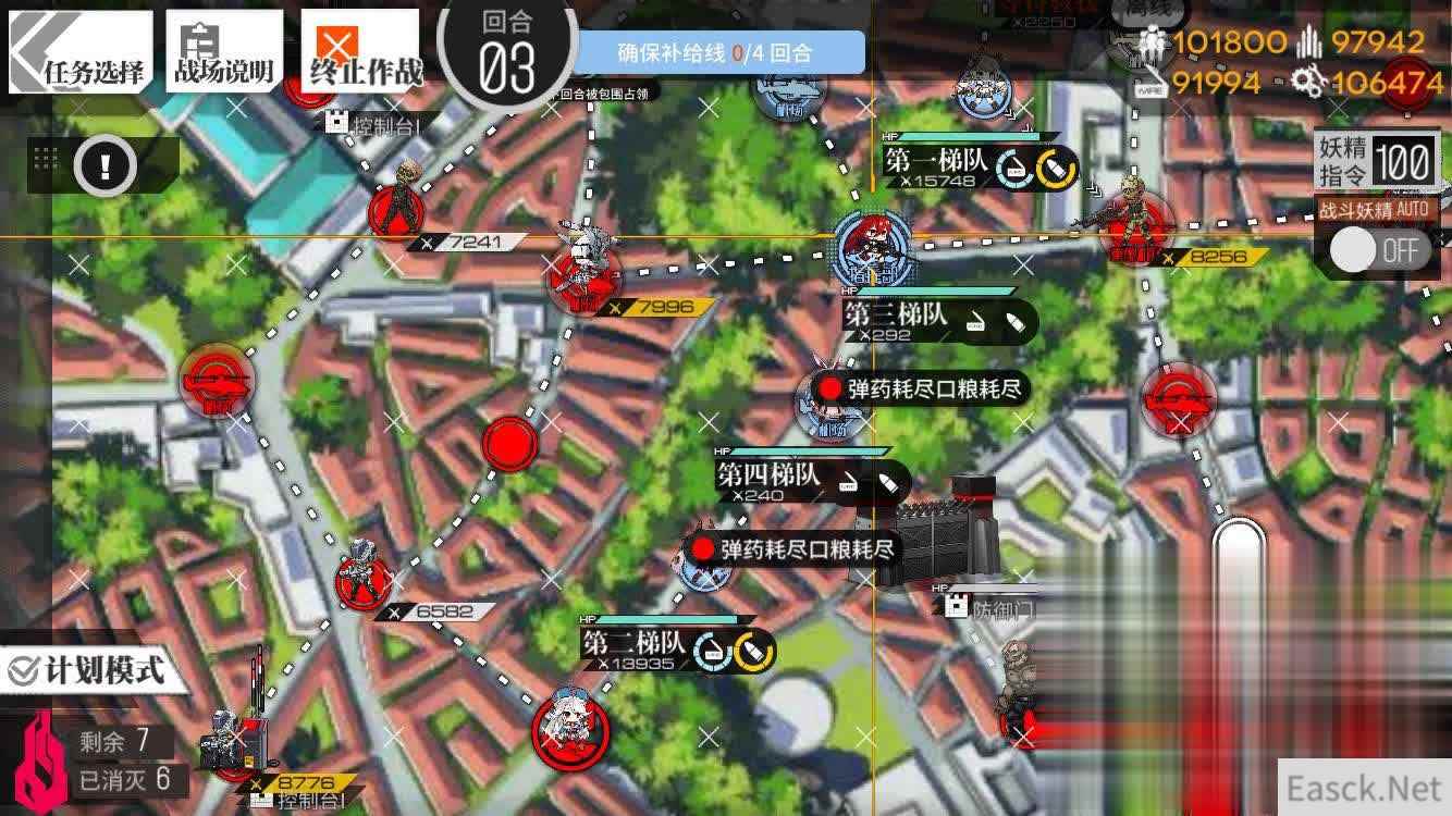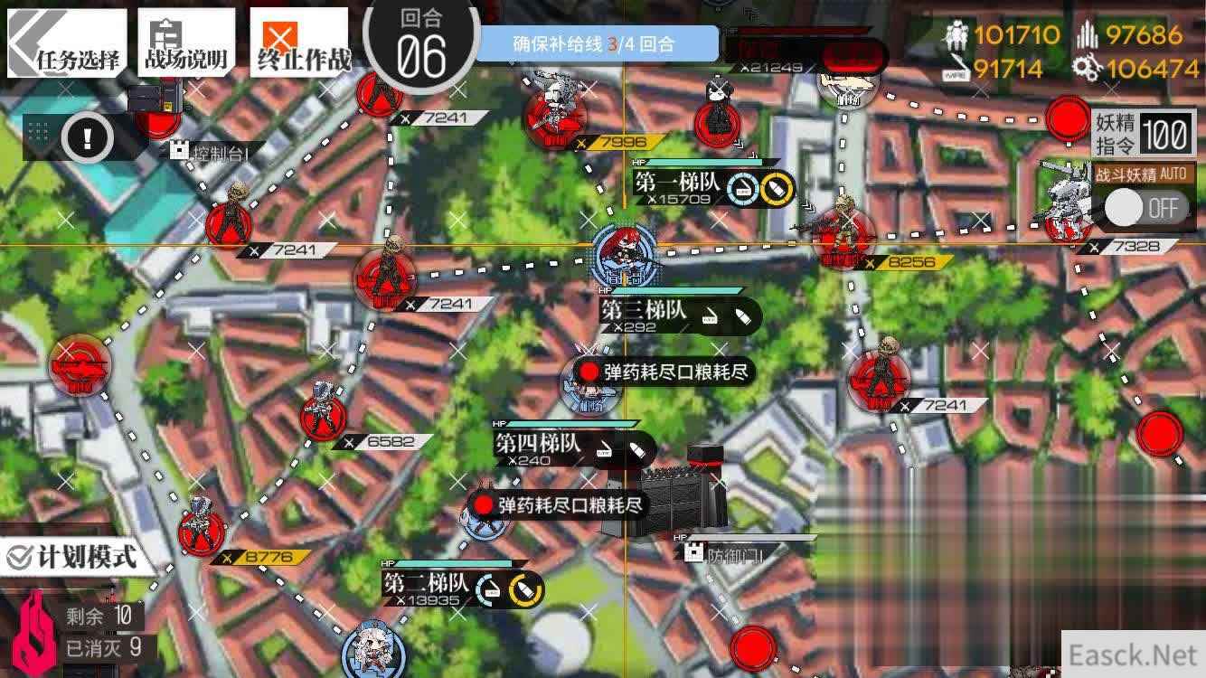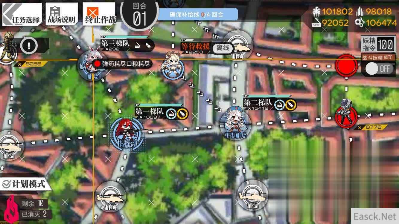 2、回合攻略 第一回合 主力梯队一路打到控制台,然后关门,关门之后原地撤退回来,其实感觉这一步如果不原地撤退而是让指挥部主力往下一格更好,能省一回合,不过懒得重打了,反正结果没啥区别。
