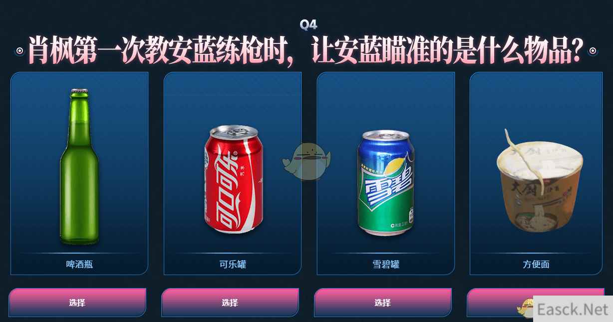 肖枫第一次教安蓝练枪时,让安蓝瞄准的是什么物品? 答案是啤酒瓶。