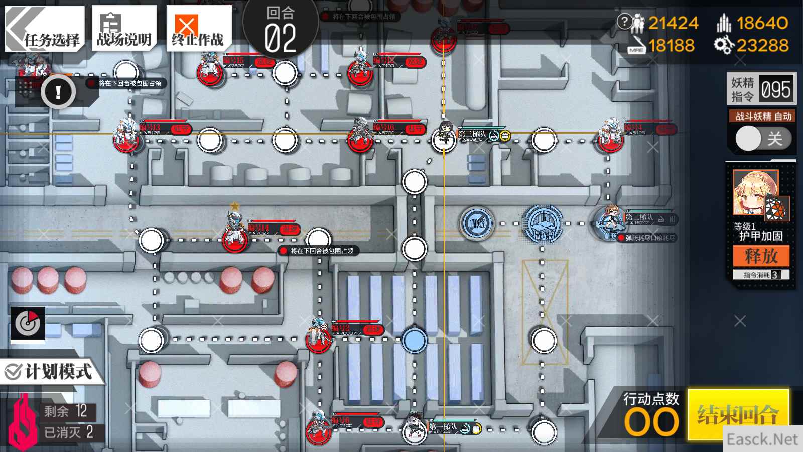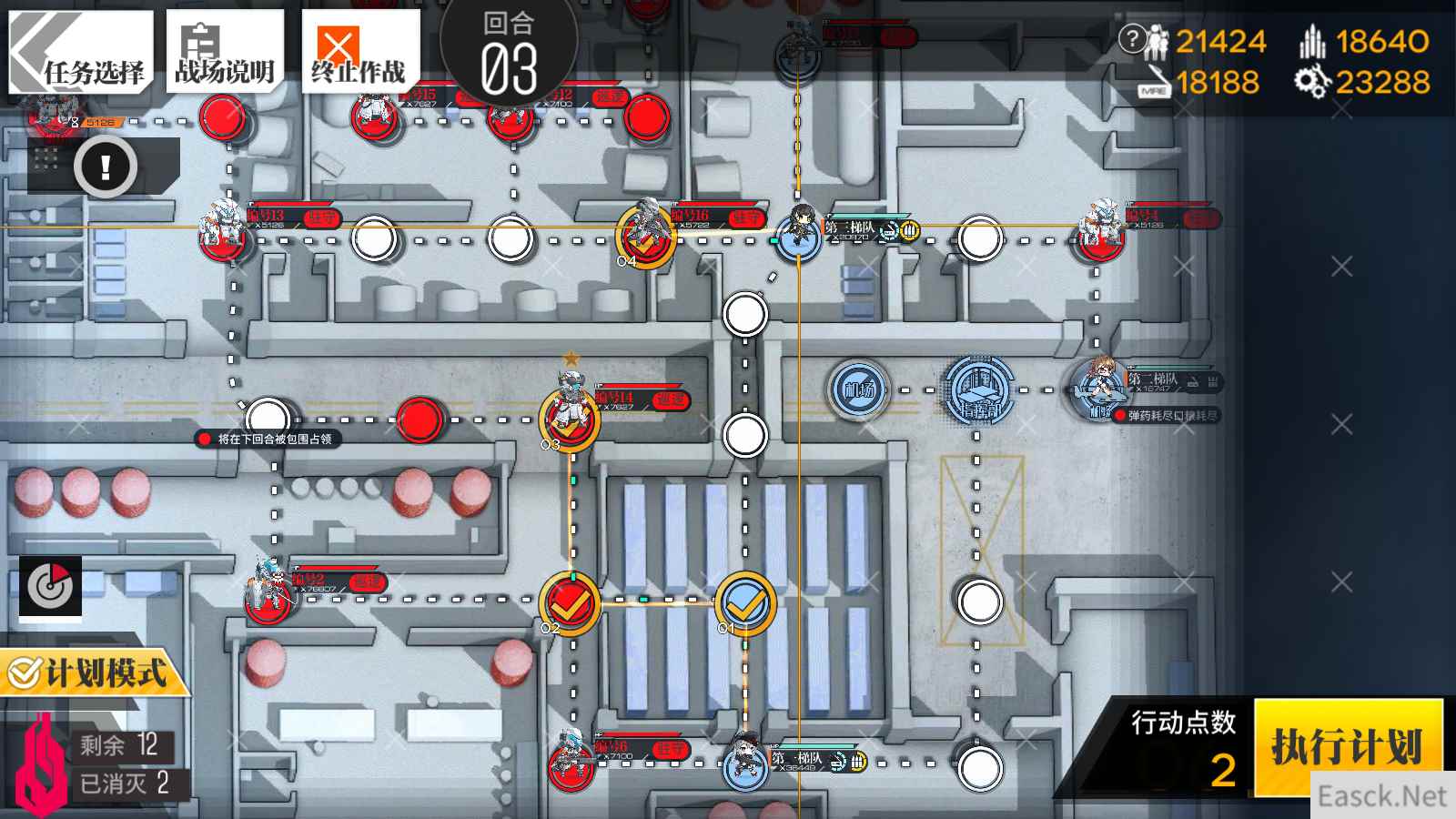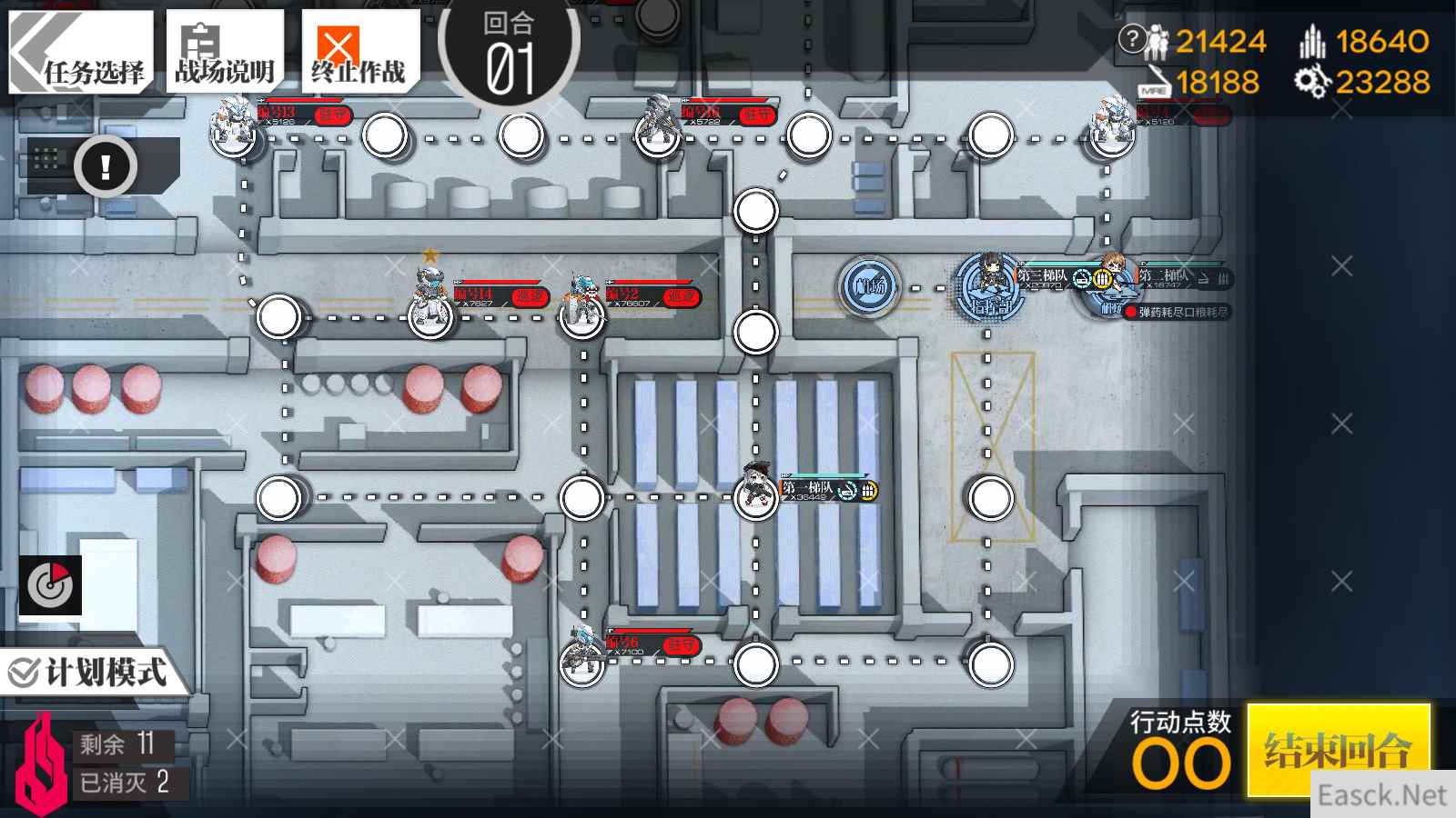 3-3 《少女前线》熵减焓增3-1通关攻略第一回合:移动到图示位置,下一队狗粮,换位。 家门口的那个重甲单位实在是顶不住,但是下面的小兵有剑盾士,记得拉一下。