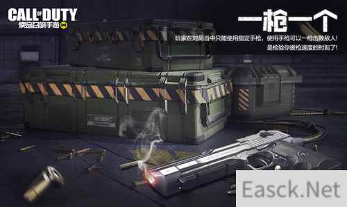《使命召唤手游》一枪一个玩法介绍【玩法介绍】 在该模式下,战士们将只能使用手枪,并且在对局过程中手枪一发即可带走敌人,在如此严苛的交战环境,极低的容错率下,战士们更能感受到真实战场上的残酷。 届时,一枪一个正式开战后,战士们的呼吸还能来得及恢复生命值吗?战士们的身法还能在子弹中穿梭吗?战士们的打法是一如既往的冲锋,还是蹲点架枪“静候佳人”呢?全新的模式全新的体验,一切打法都将面临新的挑战,瘦普的小手枪已经跃跃欲试啦~