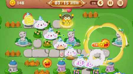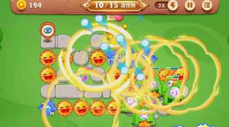保卫萝卜3公园第51关怎么玩?本关地形简单,但是难度不小,可以使用的炮塔只有两个,但是大家不要担心,下面小编为大家带来《保卫萝卜3》公园第51关通关攻略,本关还有隐形炮塔哦。 1、起手先在右边放置太阳花,用来清理场景道具。拐角处打开后,会发现毒气桶,升满。接下来在左下角放置太阳花。