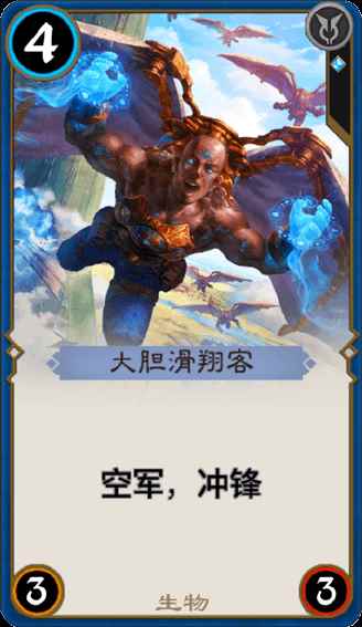 大胆滑翔客是用来对战亡者大军的有力的空中军队,他们可以在空中找寻敌方的弱点,然后急速俯冲给予最强的一击,轻松击败敌人。它是《秘境对决》中的一张蓝色生物卡。 大胆滑翔客 费用