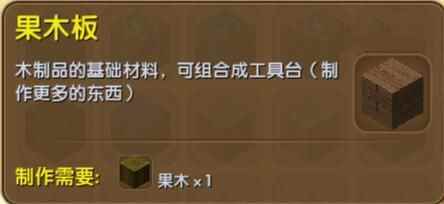 这是用果木做出来的果木板,木制品的基础材料,可以组合成工具台,因为是非常常见的树,小伙伴很快就能制作出来了,下面就是果木板的合成表图鉴了,希望可以帮助到大家。