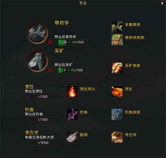 在这之前,为了方便出行,看到绿色感叹号也不要忘了点击一下解锁飞行点哦~ 4. 提升专业技能 在8.0前夕版本中,所有生活技能和专业技能都被修改为根据资料片分类。赞达拉的技能满级为150点赞达拉点数。