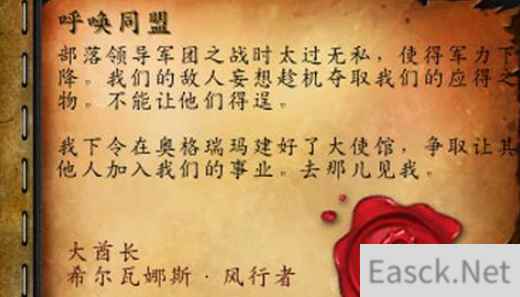 详细答案: 在奥格瑞玛(37,81)大使馆处找到希尔瓦娜斯接取呼唤同盟任务。