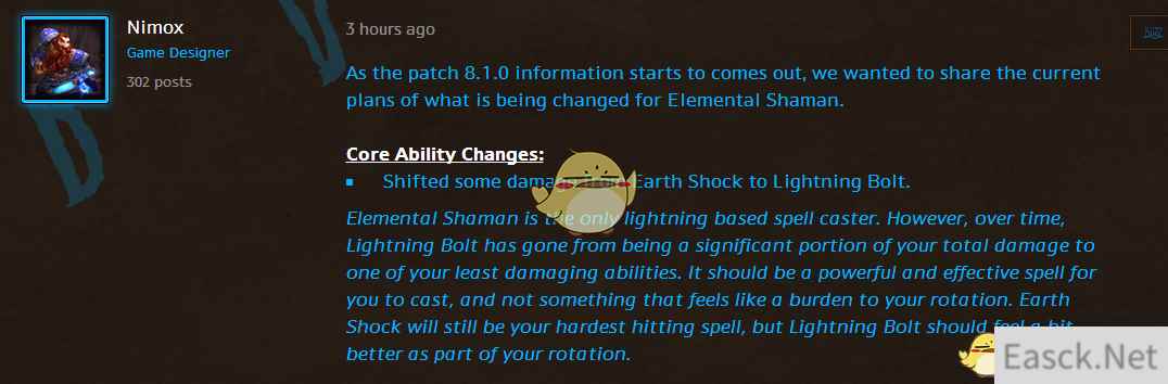 详细答案: 《魔兽世界》8.1萨满重做介绍