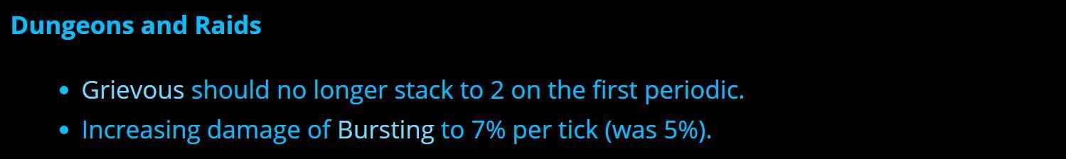 蓝贴内容翻译如下: 地下城和团队副本 重伤在第一个周期内部会叠加到2层。 p 崩裂的每一跳伤害提高至7%(原为5%)。 p