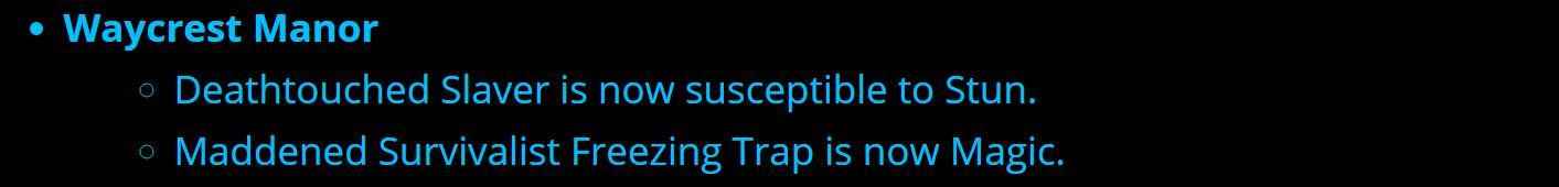 维克雷斯庄园 亡触奴隶主现在可以被昏迷。 p 疯狂生存专家的冰冻陷阱变成魔法。 p