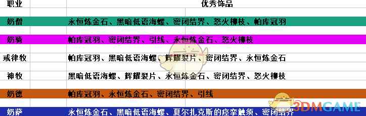 图上饰品出处 永恒炼金石:炼金制作 黑暗低语海螺:风暴神殿 怒火柳枝:维克雷斯庄园 帕库冠羽:达萨罗之战神选者教团 密闭结界:达萨罗之战圣光勇士 引线:托尔达戈 夏尔扎克斯的痉挛触须:奥迪尔拆卸者 辉耀裂片:达萨罗之战丰灵 另外需要指出的是,蛇人神庙掉落的“缠结精华之牙”被很多国外高端团队的奶德、戒律牧、神牧选用,但具体为什么优秀笔者这边还没有研究明白,所以暂不在表上列出,各位相关职业可以自行试验 魔兽世界社区所有攻略资讯查询方法:1、想要寻找魔兽世界正式服和怀旧服最新攻略、资讯,可以下载安装魔兽世界社区。 2、首先点击下载魔兽世界社区,安卓下载地址:点击查看,IOS下载地址:点击查看,或者直接下载3dmapp,下载地址:点击查看。 3、下载安装app,然后点击app上方搜索关键词,会有相关下拉搜索,选择自己想要的魔兽世界攻略或者资讯,可以点击查看。