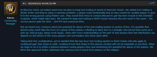 魔兽世界的怀旧服放出消息已久,估计离正式推出的日子也已经不远了,在最新的怀旧服蓝贴中,官方声明了怀旧服最新的装备交易机制,这个机制非常的重要,关心的玩家一起来看看吧。 魔兽世界14天游戏时间免费领取地址:点击查看 《魔兽世界》怀旧服最新蓝贴声明仅团本可交易装备