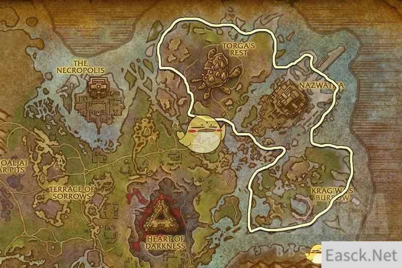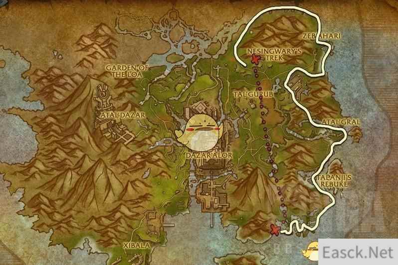 祖达萨 从红叉绕着黄线刷草药,到另一个红叉后用飞行管理员回到另一边。