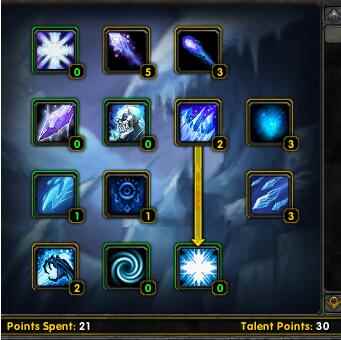 天赋说明:抛却法师特有的控制技及加成,专注在伤害和续航(无脑寒冰箭)。 缺点:只适合打团本,出本遭遇敌对,容易躺。 建议:推荐给主打团本的法爷们。 2、团本天赋(深冰+火)