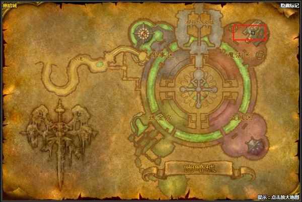 3、幽暗城传送门训练师位于,幽暗城中魔法区的位置,如上图之中所示,具体坐标为84.2,15.6,名字叫莱克斯顿莫泰姆传送门训练师。