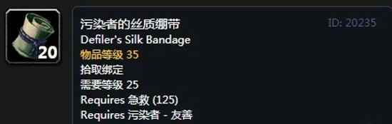 31、污染者的魔纹布绷带:绷带,在8sec内回复1104点生命值。只能在阿拉希盆地内使用,污染者声望友善后兑换。
