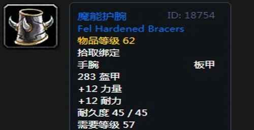 魔能护腕:护腕,出自厄运之槌北部赫尔努拉斯,推荐附魔偏斜; 基础属性:283护甲,+12力量,+12耐力,装备效果防御技能提高3点。