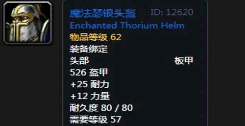 魔化瑟银头盔:头部,出自锻造专业制作,推荐附魔次级奥术融合。 基础属性:526护甲,+12力量,+25耐力,装备效果防御技能提高9点。