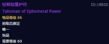 《魔兽世界》短暂能量护符饰品介绍