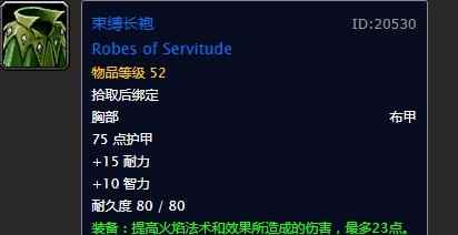3、束缚长袍:蓝色品质布甲上衣,75护甲,+15耐力,+10智力,装备效果提高火焰法术和效果所造成的伤害,最多23点,提高暗影法术和效果所造成的伤害,最多23点。 其实选择性的话还是推荐大家选择武器,因为在团本之中武器的竞争永远是最大的,所以为了给大家省钱选武器是不错的选择。 魔兽世界社区所有攻略资讯查询方法:1、想要寻找魔兽世界正式服和怀旧服最新攻略、资讯,可以下载安装魔兽世界社区。 2、首先点击下载魔兽世界社区,安卓下载地址:点击查看,IOS下载地址:点击查看,或者直接下载3dmapp,下载地址:点击查看。 3、下载安装app,然后点击app上方搜索关键词,会有相关下拉搜索,选择自己想要的魔兽世界攻略或者资讯,可以点击查看。