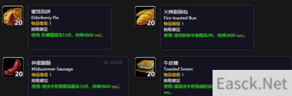魔兽世界怀旧服仲夏节奖励有蜜饯馅饼、火烤甜面包、仲夏腊肠、牛皮糖,可获得不同类型的buff,持续1小时,道具有效期到火焰节结束。非盗贼玩家最多可得10个食物。 魔兽世界14天游戏时间免费领取地址:点击查看