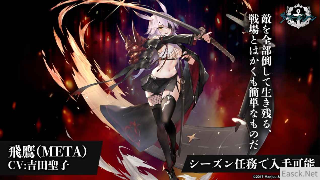 《碧蓝航线》飞鹰META技能属性介绍一、基本信息 Hiyō.META 阵营:余烬 获得方法:「世界巡游」达到一定奖励阶段即可获得该角色; 本期世界巡游活动时间:12月1日 0点 ~ 1月30日23:59 二、技能介绍 1.【翱翔之翼】 自身执行空中支援时,额外使用舰载机编队进行一轮攻击Lv.1(满级Lv.10)(威力依据技能等级) 鹰之合击:和隼鹰共同出击时,提高自身航空、命中1.0% (满级10.0%) 2.【戢羽待发】 战斗开始时,若自身装备有任意重樱舰载机武器,自身被侦测条最大值增加15点; 若未装备任何重樱阵营舰载机武器,自身受到伤害降低5.0% (满级15.0%) 3.大型作战效果-【破敌之炬】 与精英舰队或BOSS舰队交战时,自身造成的所有伤害提高6% 三、满级属性 护甲类型:中甲