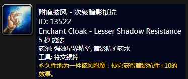 《魔兽世界》怀旧服附魔披风次级暗影抵抗介绍