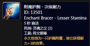 《魔兽世界》怀旧服附魔护腕次级耐力介绍