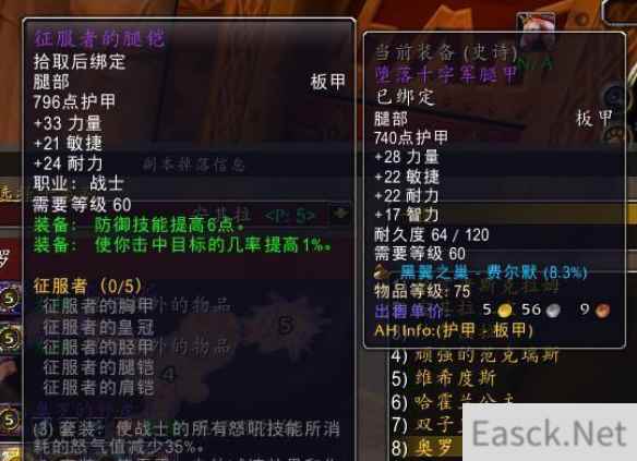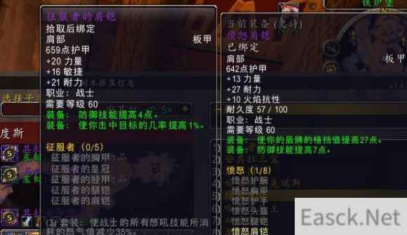 5T2的套装属性还是非常不错的,降低5点技能消耗,非常值得保留。 项链:屠龙大师勋章。 P5阶段并没有特别好的防御项链,屠龙大师依然是防战最优选。 远程武器:末日之弩(安其拉废墟) 这把弩近战职业会抢破头,但是防战拿来用也是极好的。 披风:强烈仇恨披风。 这个披风同样会遭到近战职业的哄抢,但也是防战毕业首选,没有的话可以先穿金巢披风(AQL)。 戒指:安格莉丝塔的触摸(或者带清算之戒堆耐)+艾古 安格莉丝塔是防战堆硬度最好的戒指,但考虑到当前版本副本难度问题,清算之戒也是不错的选择。 艾古雷亚就不说了,防战毕业的。 饰品:生命宝石+甲虫壳。 安其拉没有防战的好饰品,黑翼的生命宝石与甲虫壳依然是首选,考虑到当前配装已经达到了6命中,所以龙牙饰物可以不用考虑了,生命宝石的小破斧显然更适合防战。 武器:风剑