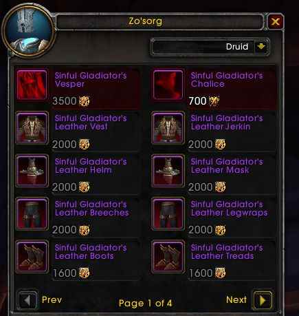 价格:基础190装等的征服装,大件(武器衣服等)2000征服,小件1600,披风戒指1200