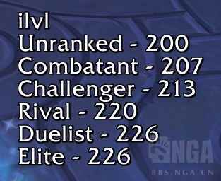 详细答案: 装等如下: pvp等级 升级次数 装等 0 1/7 190 0 2/7 200 1400 3/7 207 1600 4/7 213 1800 5/7 220 2100 6/7 226 2400 7/7 226卖征服装备的商人就在荣誉商人边上。如图