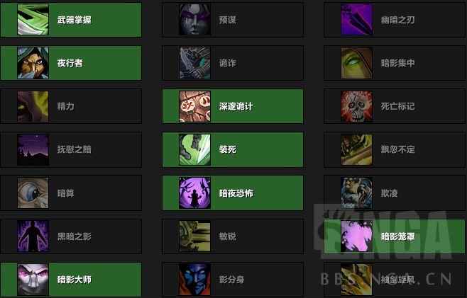 效能导灵器: 深邃之匕:剔骨和暗影穹顶使你造成的暗影伤害在5秒内提升30% /150% 。 动脉破裂:暗影打击使你下次背刺的伤害提升30% /100%,可以叠加三次。 处刑预谋:死亡符记在持续期间内提升你6% /34%爆击率。 断奏之刃:暗影技巧会额外缩短暗影之刃1秒 /3秒的冷却。 耐久导灵器: 心灵手巧:佯攻和血瓶能量降低5点。 复原:切割令你在36秒内恢复若干最大生命值。 暗影遮蔽:进入潜行后获得最大生命值10%的吸收盾,脱离潜行后,该效果每秒降低10%。 灵巧导灵器: 完全准备:闪躲攻击会缩短闪避1秒 /4秒(rank1/rank15)冷却。成功打断施法令你的暗影斗篷冷却缩短若干秒。 仓促上阵:肾击、偷袭、闷棍、扰乱的能量消耗降低10% /45%(rank1/rank15) 隐匿无踪:获得潜行、消失、帷幕会使移动速度提高10%,持续4秒。 刹那抉择:暗影步射程提高12%,冷却时间缩短。 输出手法