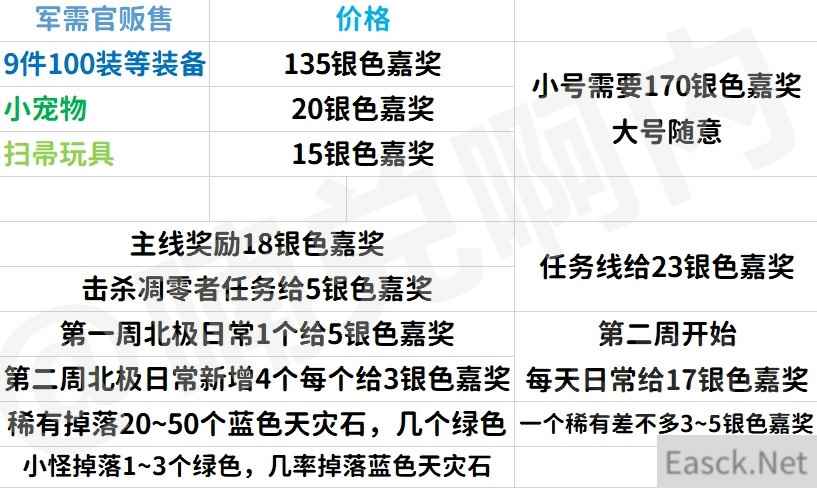 北极在之后随着任务进行也会解锁更多的日常 日常也会给不少的银色嘉奖 但是大部分日常是在第二周解锁 也就是11月19号那周解锁 如果不心急的可以慢慢刷稀有日常给小号弄装备 |