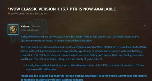 怀旧服在NAXX之后将要再次迎来了一次更新,因为补丁后面的7数字,被玩家称为怀旧服的“P7阶段”。只是这次更新并没有新的副本或者剧情加入,而只是更新了一些游戏中的细节,最大改动就是法术结算时间由400毫秒降到了10毫秒。具体的内容改动情况,相信大家应该都有所了解了,在这里就不多废话了。