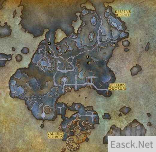 大部分碎皮兽都很凶,不过这个叫做暗殴的碎皮兽意外的好脾气。它栖息在图中红色的地方,你可以在图中黄色的地方找到一些可以交互的蘑菇,这些蘑菇一般长的位置比较奇怪,不过你可以和蘑菇互动,然后摘蘑菇给暗殴吃。