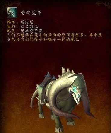 而在9.0版本上线后,玩家却迟迟没有发现任何解迷坐骑的线索,时至今日,一头名为“骨蹄荒牛”的坐骑基本可以被确定是9.0的解迷坐骑了。
