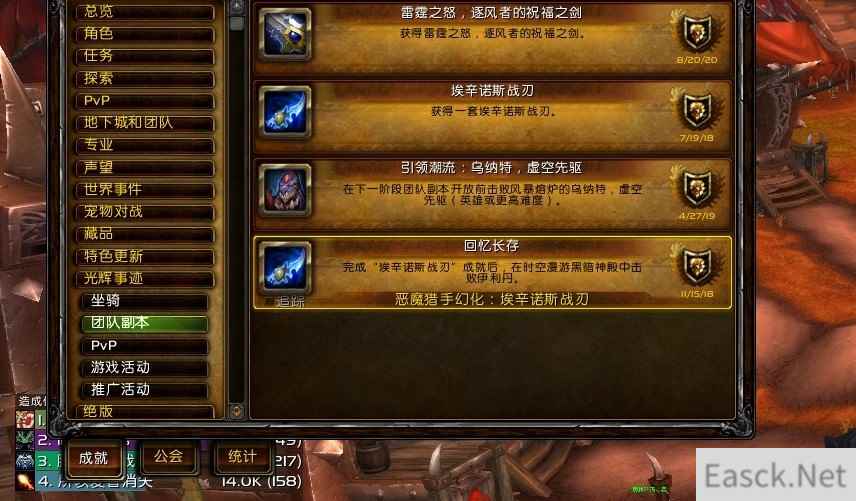 其次,蛋刀解锁幻化需要在《燃烧的远征》时光周,组队前往沙塔斯城,与NPC对话进入时光版的黑暗神庙,击败伊利丹之后获得“回忆长存”的成就,只要击败伊利丹就可以,其他BOSS可以无视。