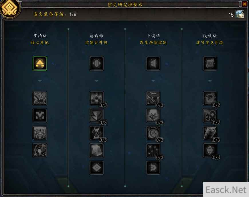 1、“节拍语理解” 可以使用一个元尊核心宠物以及它的升级。——立刻完成 1.1 回拍词:附近有回声机若时,可以让波可波克找出并在你的小地图上标记。——1分钟 1.2 物拍词:你可以与造物宝箱互动。附近有造物宝箱时,可以让波可波克找出并在你的小地图上标记。——5分钟 1.3 核拍词:附近有无核自动体时,可以让波可波克找出并在你的小地图上标记。——10分钟 1.4 视拍词:可以强化波可波克的视觉外观。——8小时 2、“前调语理解” 可以使用扎雷殁提斯各处的知识索引台。 成功完整阅读一个知识索引台的话,索引台附近的所有玩家都会获得一项增益。——18小时 2.1 同调词(3个等级):提高可同时拥有的增益。——8/18/42小时 2.2 烈调词(3个等级):降低互动时消耗的能量。——8/18/42小时 2.3 时调词(3个等级):延长增益持续的时间。——8/18/42小时 2.4 增调词(3个等级):制造一个强化水晶,可以插入带水晶插槽的战斗韵律齿轮(Battle Rhythm gear)。强化在所有暗影国度户外区域生效。——18小时 2.5 低音语理解:可以与塑地之台、朝圣者的恩典以及不羁芳绿的机若交流和互动。——162小时 3、“中调语理解” 可以使用强化控制台。 强化控制台可以为玩家提供限时强化选项。——162小时 3.1 创音词(3个等级):波可波克可以和回声机若互动,使你的移动速度提高,使你采集时获得更多资源,或者降低敌人可以探测到你的范围。——8/18/42小时 3.2 破音词(3个等级):提高共振自动体的生命上限和物理伤害。——8/18/42小时 3.3 技音词(3个等级):波可波克可以控制共振自动体一段时间,减少共振自动体的技能冷却时间。——8/18/42小时 3.4 能音词(3个等级):波可波克每x分钟获得1点能量。——8/18/42小时 3.5 高音语理解:可以与失落遗迹以及不稳定沙漠的自动体交流和互动。——162小时 4、“浅频语理解” 可以使用高级元尊核心宠物升级。 处于扎雷殁提斯时,波可波克可以担当额外的职责来协助你。——162小时 4.1 防频词(2个等级):波可波克可以在战斗中协助你,充当伤害输出的职责。——18/42小时 4.2 辅频词(2个等级):波可波克可以在战斗中协助你,充当辅助的职责。——18/42小时 4.3 满频词(3个等级):提高波可波克的能量上限。——18/42/66小时 4.4 迅频词(3个等级):激活共振守卫3分钟。减少共振守卫主要技能的冷却时间。——18/42/66小时 |